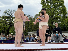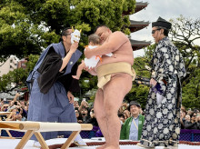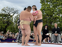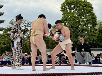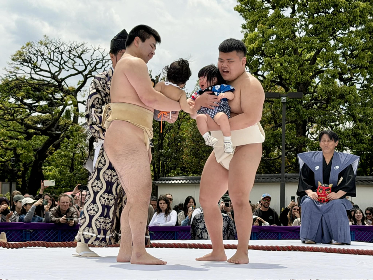 子どもの健やかな成長を祈る第36回「泣き相撲」が浅草寺(台東区浅草2)で4月25日、多くの観光客が見守る中で開催された。