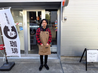 店名の「SANSOU CAFE」は、父が浅草で営んでいた「山荘旅館」から。山荘旅館を閉じてから、せっかくなら名前を残したいという気持ちでカフェの名前を付けたと店主の関田雅美さんは話す。ロゴの上部に山荘旅館の瓦屋根、下部に山荘旅館にあった藤棚を、それぞれモチーフにデザインした。