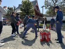浅草寺周辺で3月5日、「災害時における帰宅困難者対応訓練」が行われた。主催は、浅草地区帰宅困難者対策推進協議会。