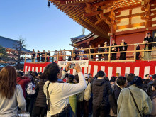 浅草寺(台東区浅草2)で2月3日に「節分会(せつぶんえ)」が行われ、恒例となる浅草ゆかりの芸能人による豆まきが行われた。