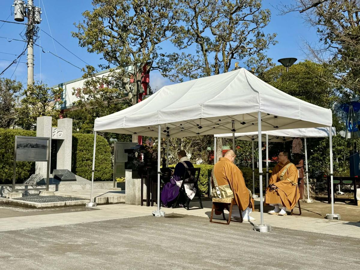 浅草寺(台東区浅草2)の淡島堂にある大平和塔前で3月10日、「大平和塔戦災殉難者法要」が行われた。