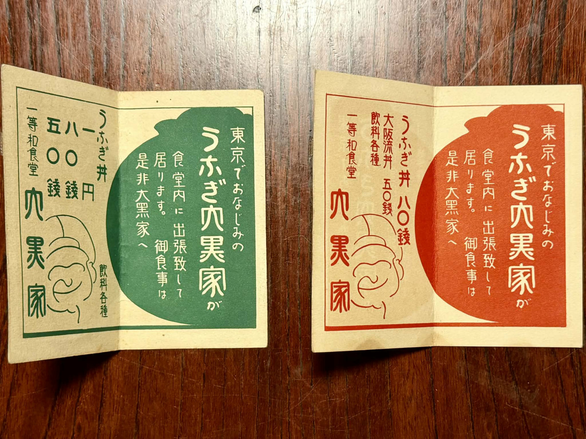 天丼・うなぎ割烹「大黒家」:汽車時刻表裏の広告