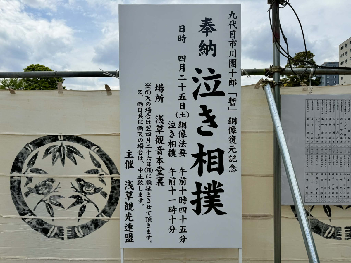 浅草寺で「泣き相撲」、子どもの健やかな成長祈る 市川團十郎さん家族も