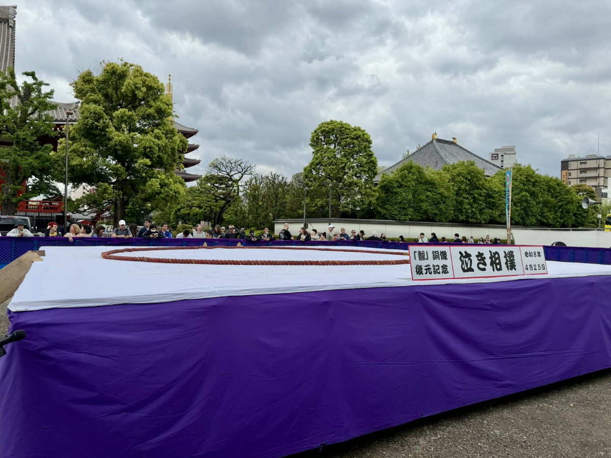 子どもの健やかな成長を祈る第36回「泣き相撲」が浅草寺(台東区浅草2)で4月25日、多くの観光客が見守る中で開催された。