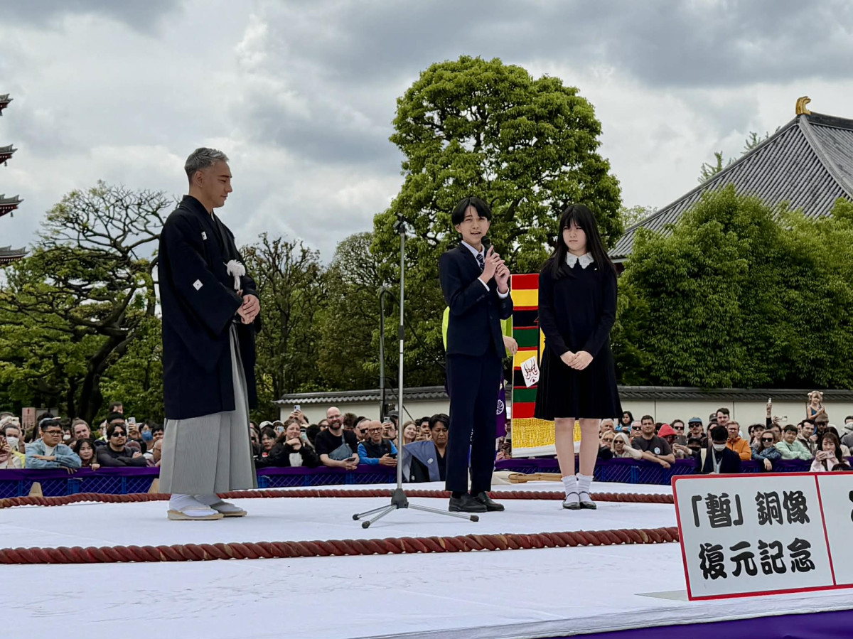 浅草寺で「泣き相撲」、子どもの健やかな成長祈る 市川團十郎さん家族も