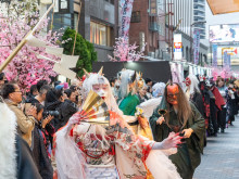 「浅草百鬼夜行パレード」が4月4日、浅草六区ブロードウェイ(台東区浅草2)で開催され、70人以上が妖怪に扮(ふん)して浅草の街を練り歩いた。