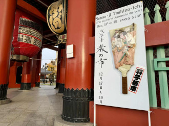 浅草寺(台東区浅草2)で12月17日~19日の3日間、「羽子板市(浅草寺歳の市)」が開催される。